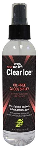 - Ampro Pro Styl Clear Ice Oil Free Gloss Spray is a lightweight, oil-free formula that can enhance shine, detangle, and revive natural, chemically-treated hair, wigs, or extensions.