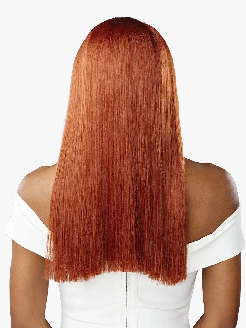- Sleek, blunt-cut straight style.