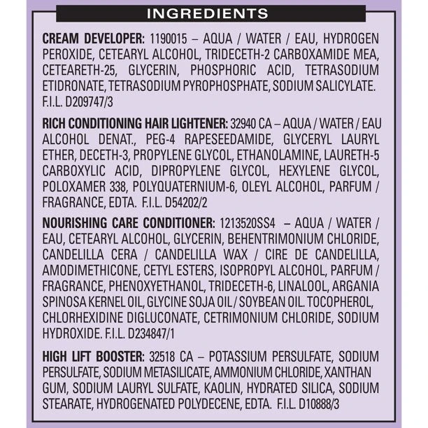 - Ingredients: Water, Hydrogen peroxide, Glycerin, Phophoric Acid